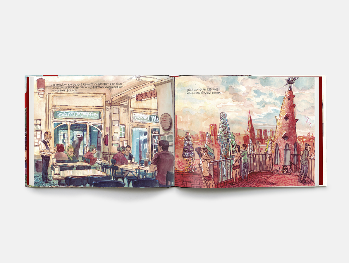 For some years, and to complement my learning, I’ve been filling sketchbooks as a hobby. I started by drawing architecture because I wasn’t very good at it. Later I started drawing people because I lacked this skill. Gradually, I started sketching moments because capturing time seemed the most important thing to me. This is perhaps why I concentrate on light, because it’s the most ephemeral aspect of the places we illustrate.