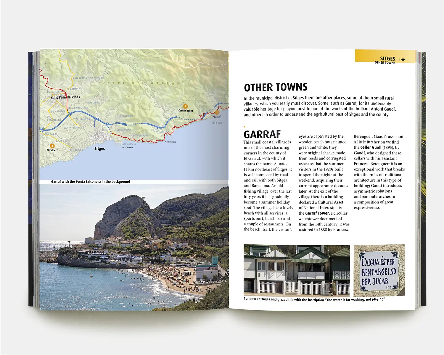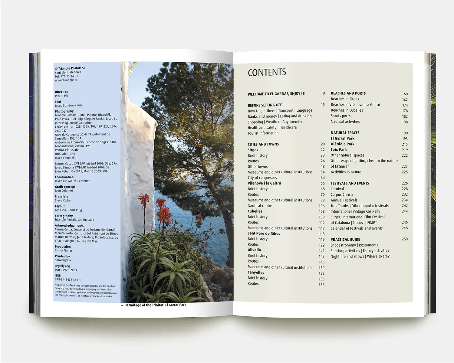 Guía del Garraf con toda la información necesaria para disfrutar al máximo de esta comarca famosa por sus fiestas, playas, gastronomía, riqueza natural y amplia oferta cultural. Incluye detallados mapas y propuestas de rutas.