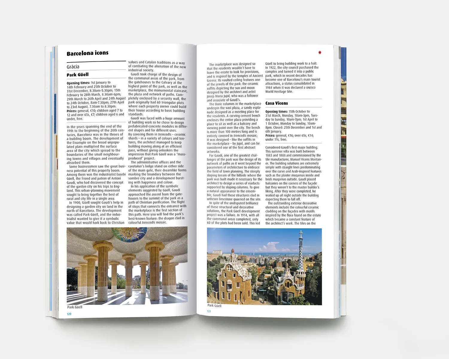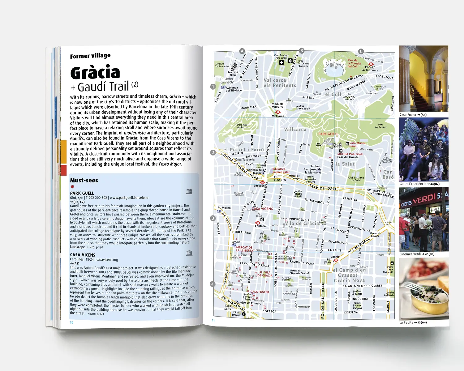 Barcelone est la capitale de la Méditerranée. Pour s’y orienter, rien de mieux que ce guide, dont les plans et les informations pratiques aident à découvrir l’ambiance cosmopolite ou la couleur locale de ses quartiers. Le guide vous permettra de découvrir les œuvres de Gaudí, Picasso, Miró ou Tàpies ; il vous recommandera les meilleures plages, les jardins et les musées les plus intéressants ; il vous informera quant à l’offre gastronomique, commerciale, théâtrale, musicale, sportive et festive. Tout cela de manière facile et compréhensible.