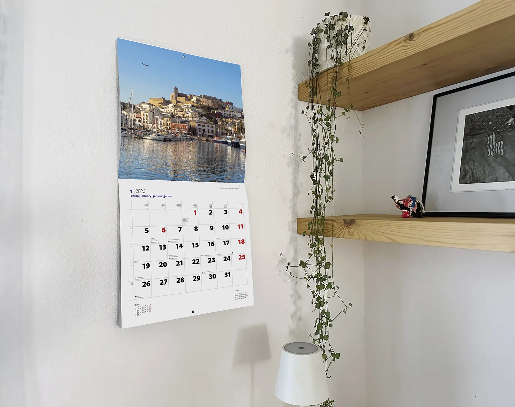 CALENDARI 12 MESOS – Gaudeix cada mes de belles fotografies en aquest Calendari 2026 Eivissa. És un calendari mensual de paret i conté 12 fotografies diferents per als amants de l'arquitectura i l'art.