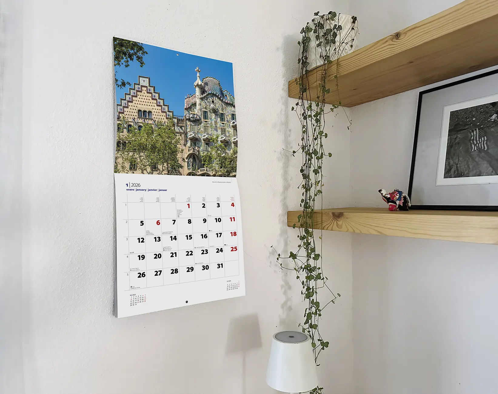 • Calendrier 2026 Gaudí A (Batlló). Découvrez l'œuvre fascinante de Gaudí grâce à ces 12 images qui vous rapprocheront de la magie des créations du génial architecte catalan.