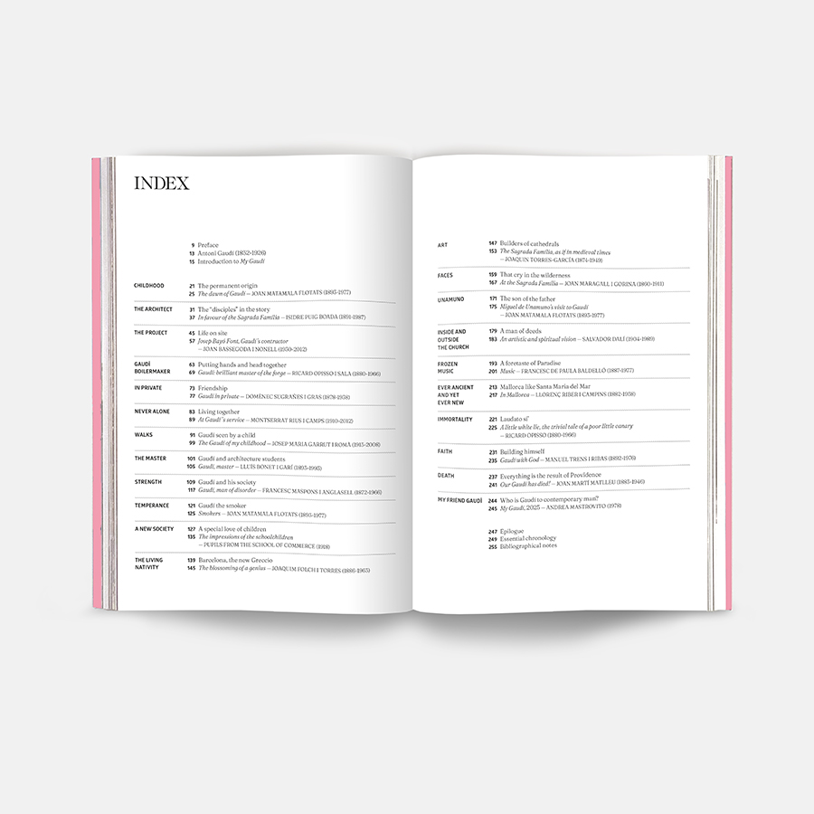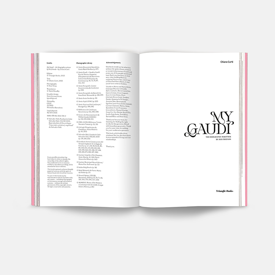 El meu Gaudí. La biografia escrita pels seus amics és un relat coral i inèdit que reconstrueix la vida d’Antoni Gaudí a través de les veus dels qui el van conèixer. A partir de cartes, records i testimonis oblidats, Chiara Curti traça un retrat íntim i proper del mestre. No és una biografia des de fora, sinó des del cor de la seva vida quotidiana. Cada testimoni és una finestra que revela l’home darrere del geni. Els textos són originals i s’han mantingut tal com van ser escrits, amb la seva vivacitat i els seus sentiments intactes. Una biografia única, feta de relats, de mirades i de memòria viva.