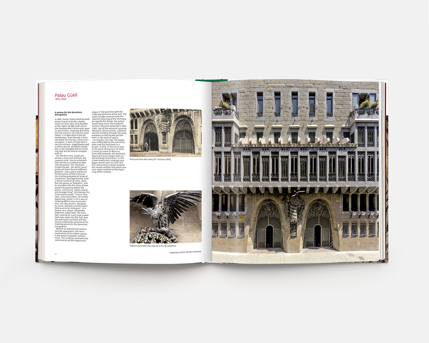 “La força d’Antoni Gaudí com a arquitecte rau en la seva prolífica invenció de formes. La varietat i expressió d’aquestes formes per si soles, com a escultures o pintures, ja li assenyalarien com a notable artista modern. Però, de fet, són el resultat d’uns invents estructurals extraordinaris, d’un imaginatiu ús de materials i d’un sentit inigualable de la decoració…, tres atributs tradicionals d’un arquitecte mestre.” (George R. Collins). Aquest llibre mostra el mestratge i el geni de Gaudí en tota la seva esplendor i a través de totes les seves obres amb les millors fotografies, textos descriptius de cada obra, alçats, maquetes, projeccions isomètriques i vídeos exclusius. “Gaudí, arquitecte singular” és un llibre imprescindible per conèixer l’obra d’un arquitecte mundialment reconegut com a creador genial. Així ho testifica la UNESCO en atorgar-li a bona part dels seus edificis la categoria de Patrimoni Mundial.