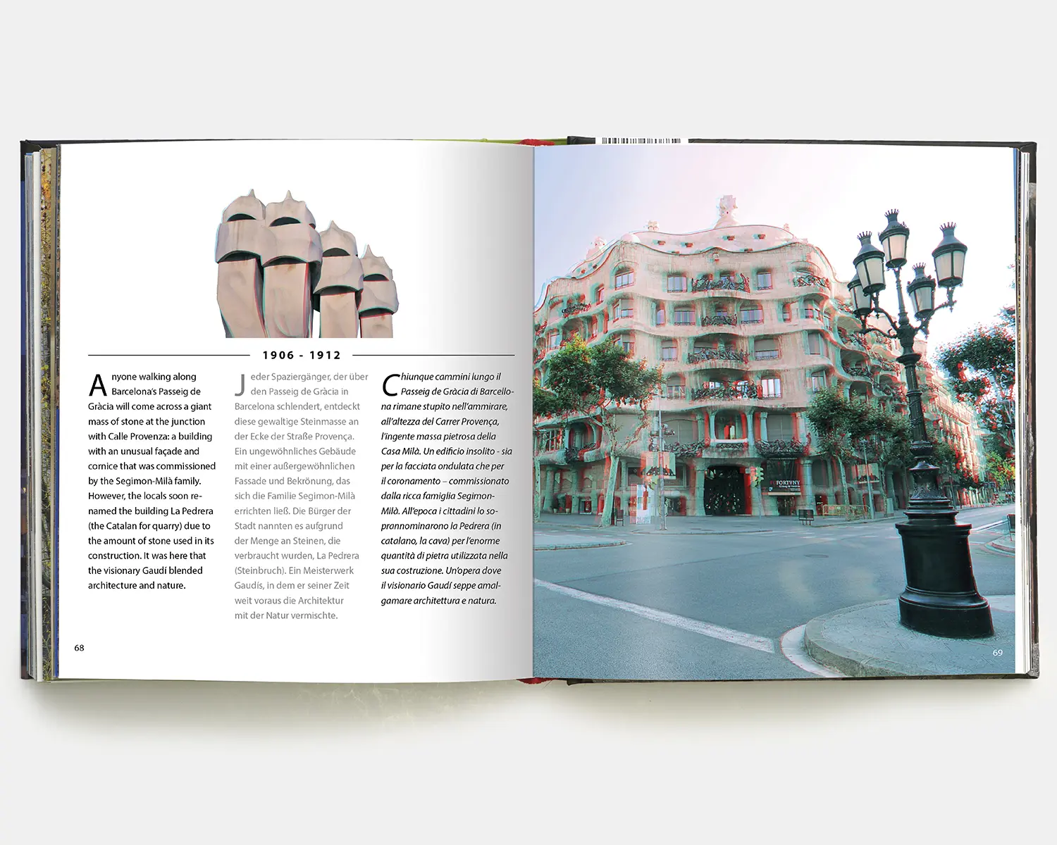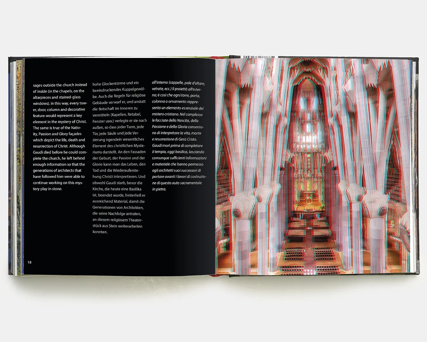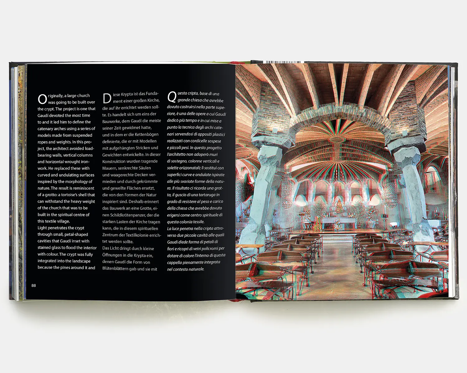 L’arquitectura de Gaudí ha estat fotografiada milers de vegades, però mai fins avui no ho havia estat en 3D, tècnica que no solament ens permet conèixer les seves obres sino que a més ens transporta al seu interior, per captar la dimensió dels seus espais, la morfologia dels seus objectes, el misteri de la seva llum, la intensitat dels seus colors, en definitiva, la màgia de tota la seva obra.