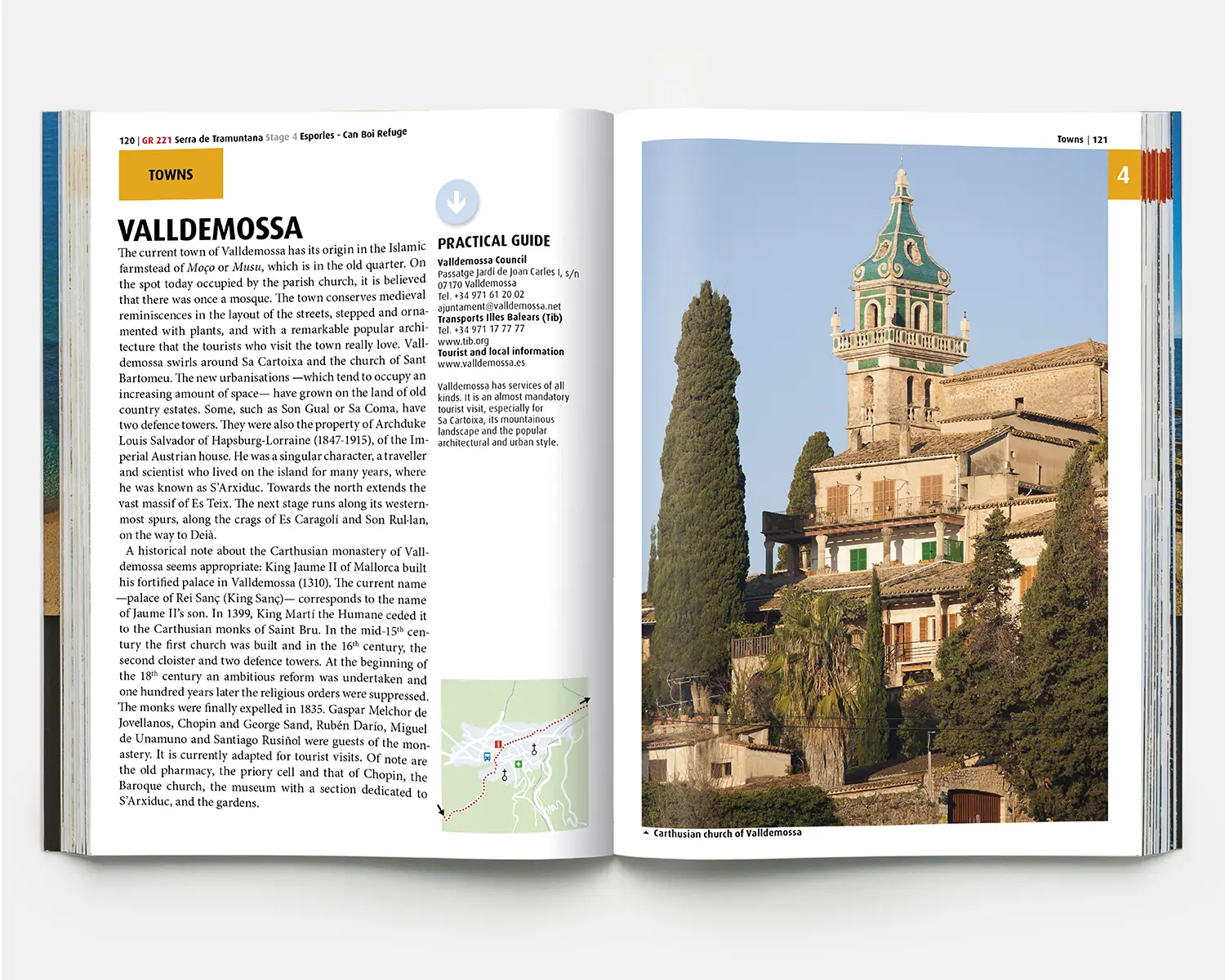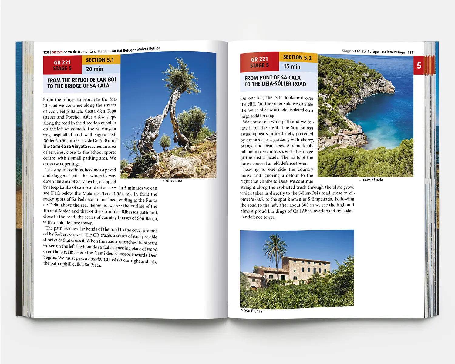 Des d’Andratx fins a Pollença, al llarg de 90 km., es desplega la Ruta de Pedra en Sec o GR 221. La guia per a excursionistes proposa fer el recorregut en vuit etapes, dividides en trams per a facilitar l’orientació. A cada etapa es destaquen els senders, els camins, els allotjaments i els punts d’interès.